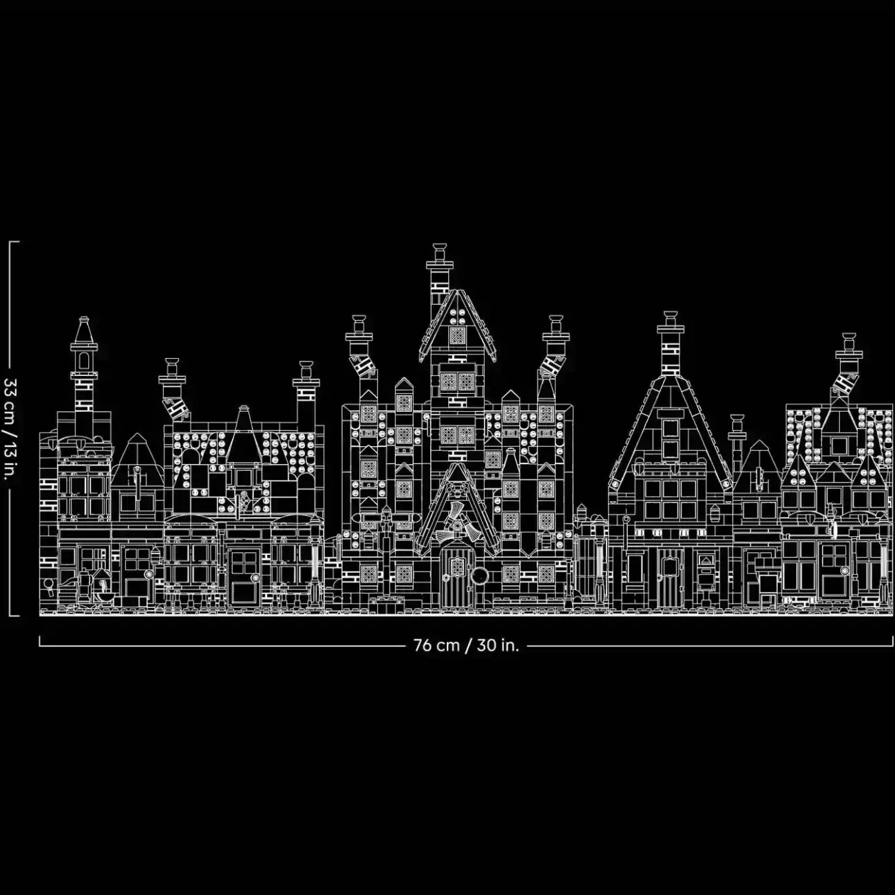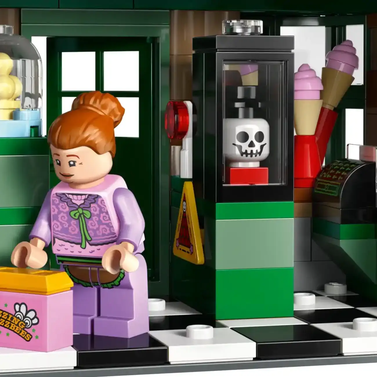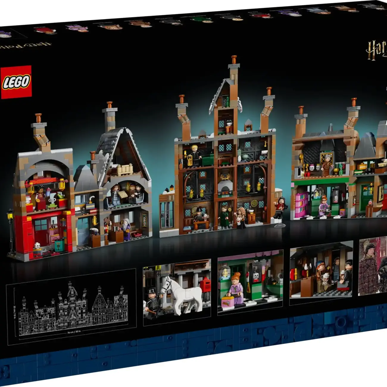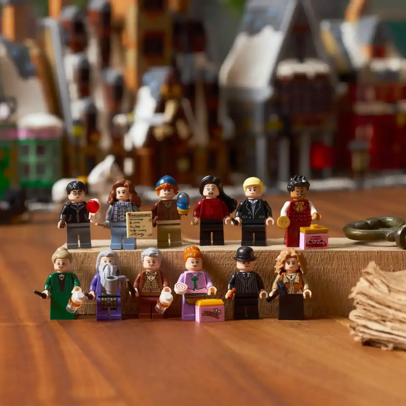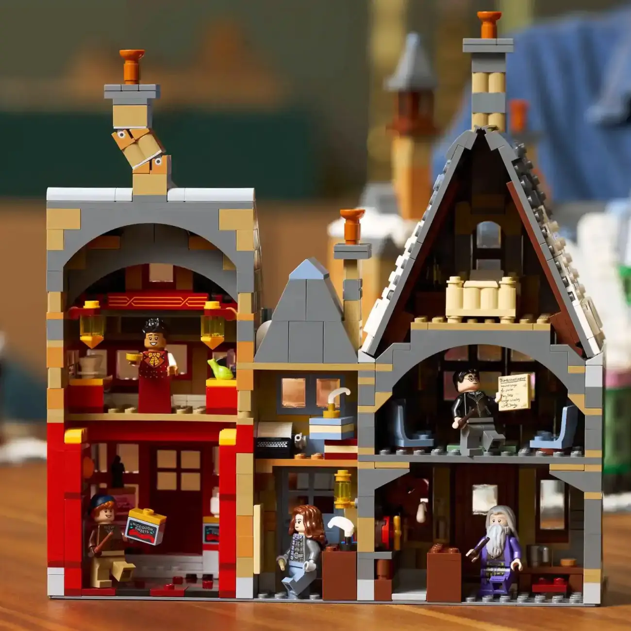 Dieses 3.228-teilige Set enthält 12 Minifiguren, darunter beliebte Charaktere wie Harry Potter, Ron Weasley, Hermine Granger, Professor McGonagall und Aberforth Dumbledore. Hogsmeade besteht aus drei Abschnitten mit sieben verschiedenen Gebäuden und wird durch schiefe Fenster, krumme Schornsteine und schneebedeckte Dächer zum Leben erweckt. Alle Türen lassen sich öffnen und geben den Blick auf aufwendig gestaltete Innenräume frei, die mit authentischen Accessoires und Referenzen gefüllt sind, von Explodierenden Bonbons und Butterbier bis hin zu Sneakoskopen und einem Erinnerungskugel. Es gibt sogar ein Porträt von Ariana Dumbledore, das sich zu einem geheimen Durchgang öffnen lässt.