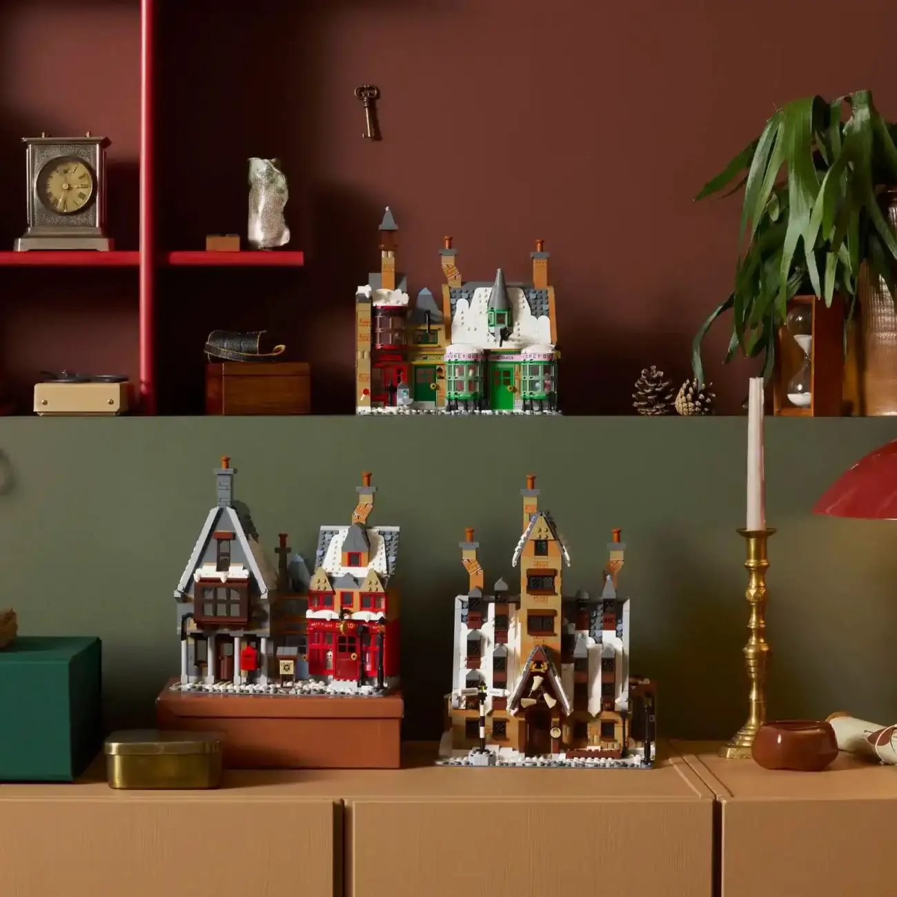 Diese magischen Modelle wurden im gleichen Maßstab wie frühere LEGO Harry Potter Sets wie LEGO Winkelgasse oder LEGO Gringotts Zauberer Bank gebaut und können miteinander verbunden werden, sodass sie sich perfekt zur Ausstellung eignen. Ob beim erneuten Besuch im Honigtopf, beim Genuss eines Butterbiers im “Die Drei Besen” oder beim Zustellen von Briefen mit der Eulenpost – Fans können die verschneite Magie von Hogsmeade wie nie zuvor genießen.