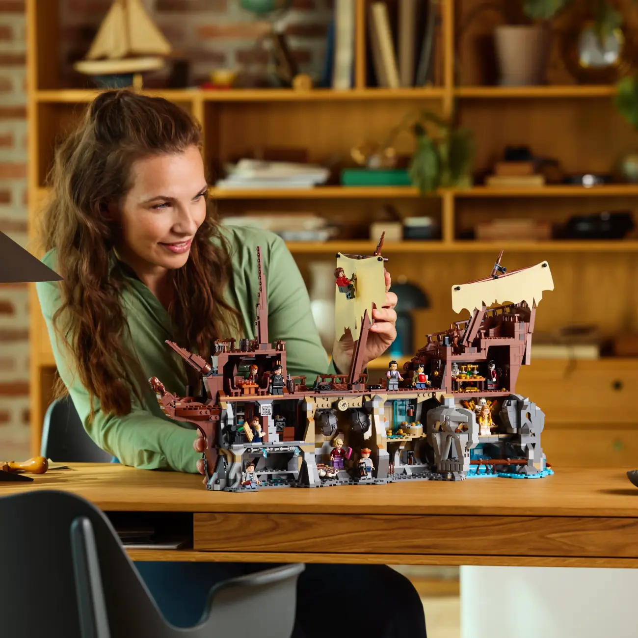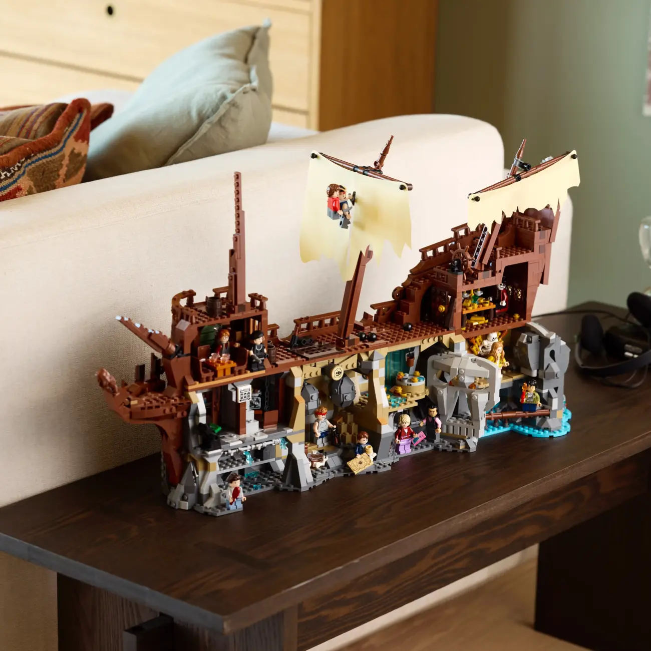 Dieses Sammlerset enthält detailreiche Nachbildungen unvergesslicher Szenen – vom Versteck der Fratellis und den Höhlen bis hin zum legendären Schatzraum von Einäugiger Willy. Das Modell lässt sich sogar umdrehen, um das gespenstische Wrack des Piratenschiffs Inferno zu enthüllen. Zwölf Hauptcharaktere sind als Minifiguren enthalten, darunter Mikey, Mouth, Chunk, Andy und natürlich Data. Für Sloths Piratenhut und sein Kopftuch sowie Mama Fratellis Haare und Baskenmütze wurden brandneue Elemente entworfen.