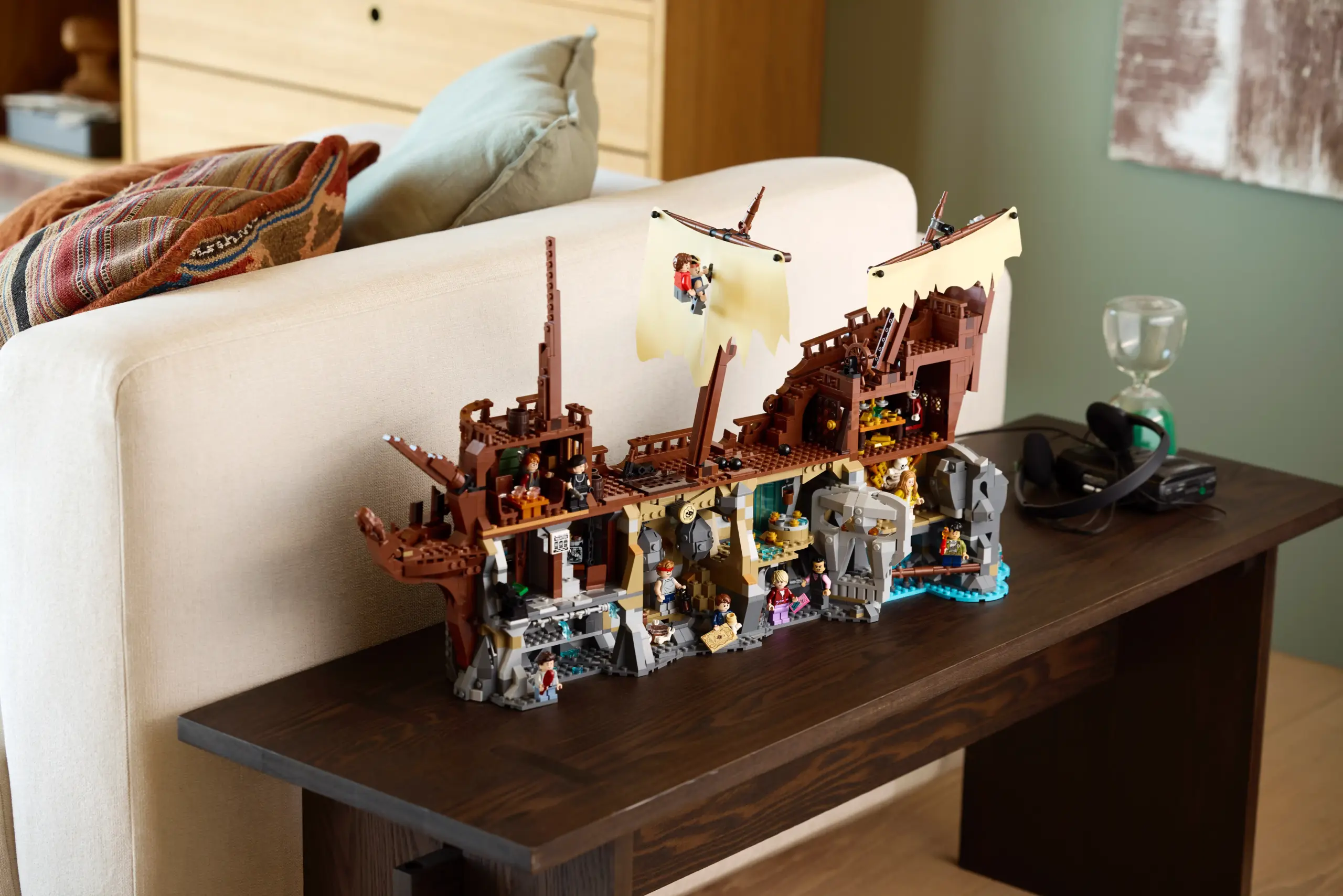 Dieses Sammlerset enthält detailreiche Nachbildungen unvergesslicher Szenen – vom Versteck der Fratellis und den Höhlen bis hin zum legendären Schatzraum von Einäugiger Willy. Das Modell lässt sich sogar umdrehen, um das gespenstische Wrack des Piratenschiffs Inferno zu enthüllen. Zwölf Hauptcharaktere sind als Minifiguren enthalten, darunter Mikey, Mouth, Chunk, Andy und natürlich Data. Für Sloths Piratenhut und sein Kopftuch sowie Mama Fratellis Haare und Baskenmütze wurden brandneue Elemente entworfen.