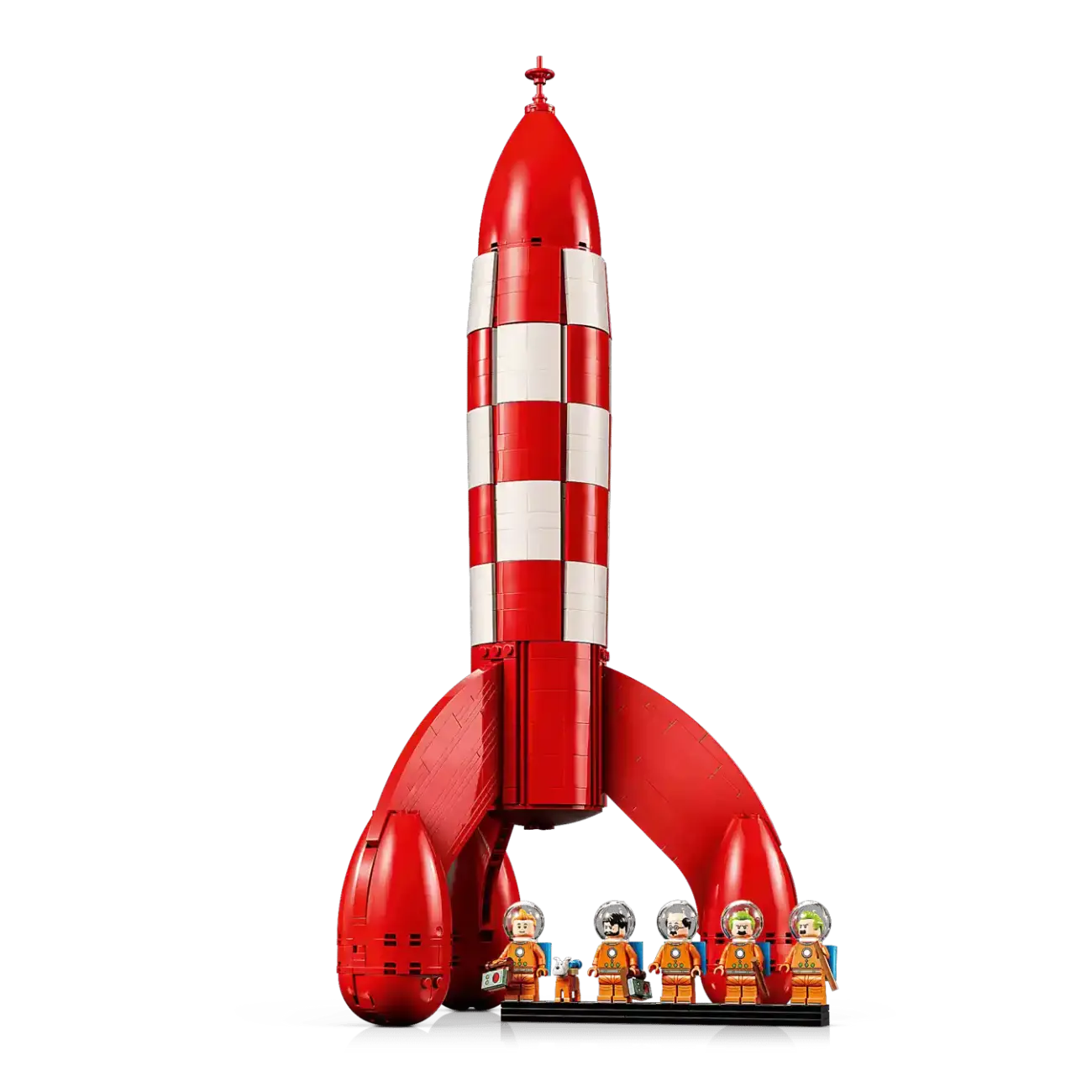 - Display-Stand: Kleiner Stand für die fünf Minifiguren (plus Struppi), perfekt zum Präsentieren neben der Rakete.