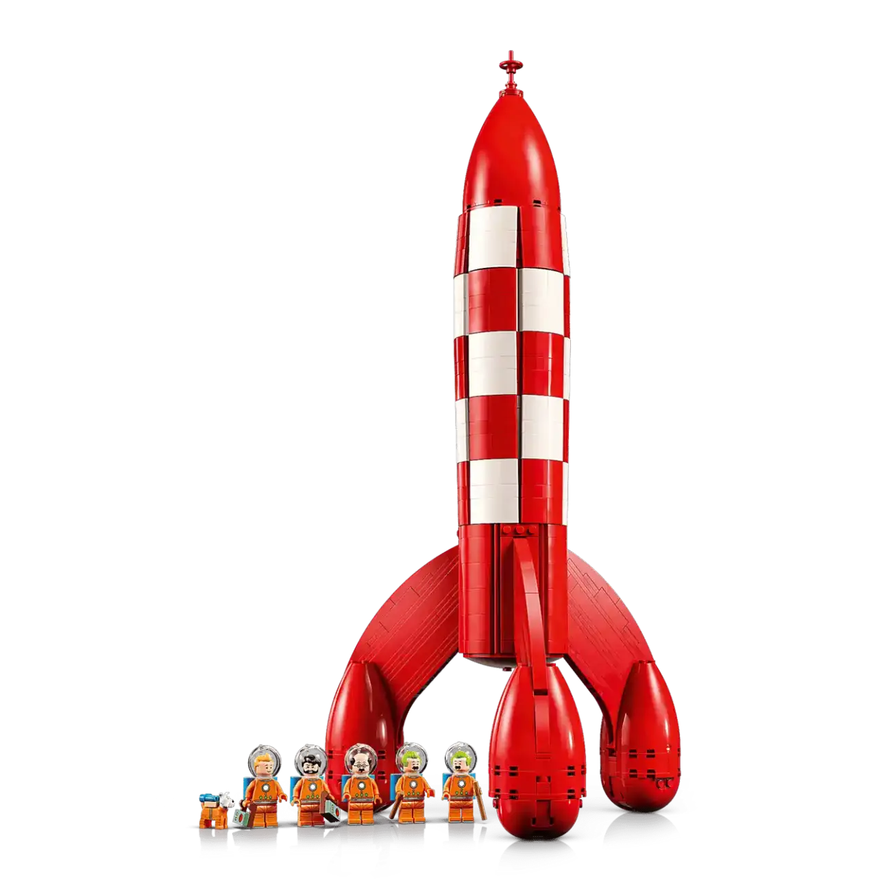 Dieses 18+-Sammlerstück mit 1.283 Teilen bringt nicht nur die perfekte Retro-Rakete (über 49 cm hoch!) zum Bauen, sondern auch die komplette Crew als exklusive Minifiguren: Tim, Kapitän Haddock, Professor Bienlein, der cholerische General und natürlich Struppi – allesamt bereit für den Start ins All!