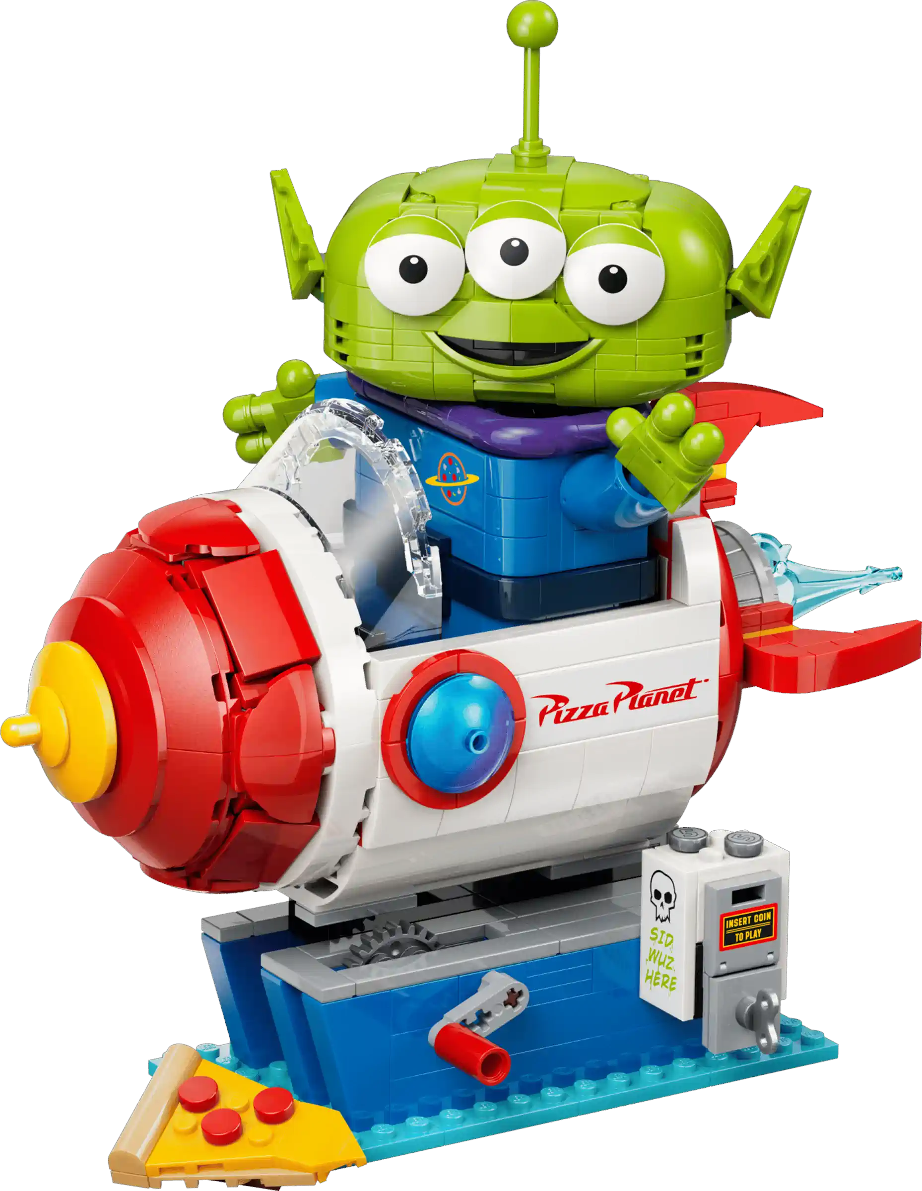 - HINGUCKER ZUM FILM TOY STORY: Toy Story Alien mit Pizza Planet Raketenfahrt (43307) ist eine tolle Zimmerdeko. Das Bauset beinhaltet unter anderem einen Raketen-Fahrautomaten, ein Pizzastück und versteckte Easter Eggs