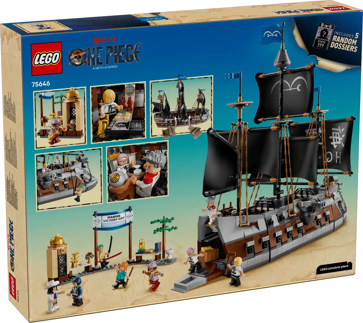 - SCHLACHTSCHIFF ZUM BAUEN UND SPIELEN: LEGO® ONE PIECE Garps Marineschlachtschiff (75646) lässt dich die Segel setzen und die Strohhut-Piraten zu neuen Abenteuern an Land begleiten. Das Set basiert auf der Netflix-Serie ONE PIECE